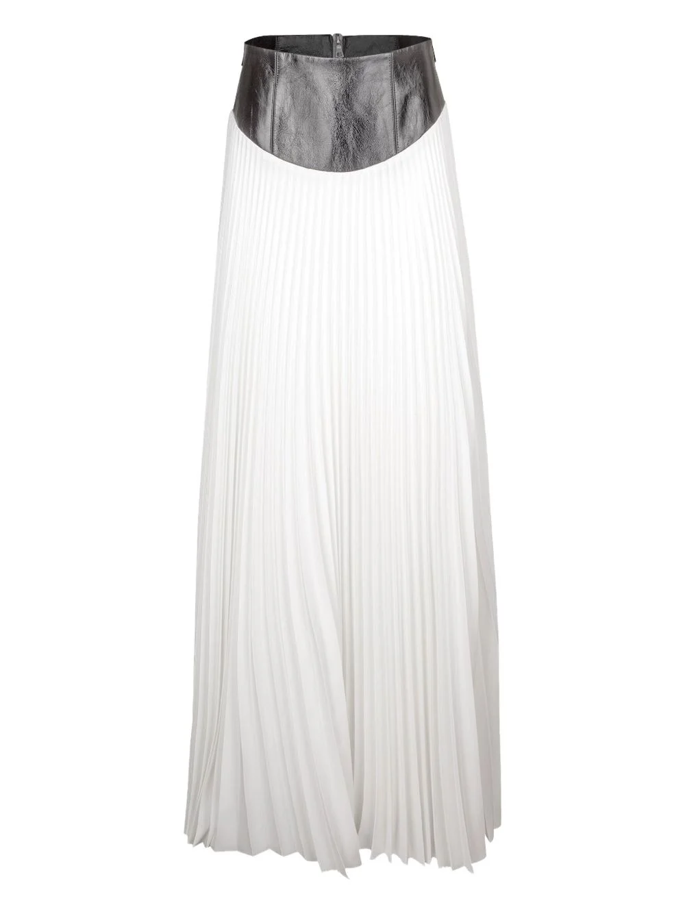 Laurel leather-waist pleated skirt Highlights - White - Pleated design - Leather waistband - Concealed zip fastening - A-line shape Made in United States Composition Calf Leather 100%, Cotton 65%, Polyamide 35% Washing instructions Read Manufacturer Guidelines