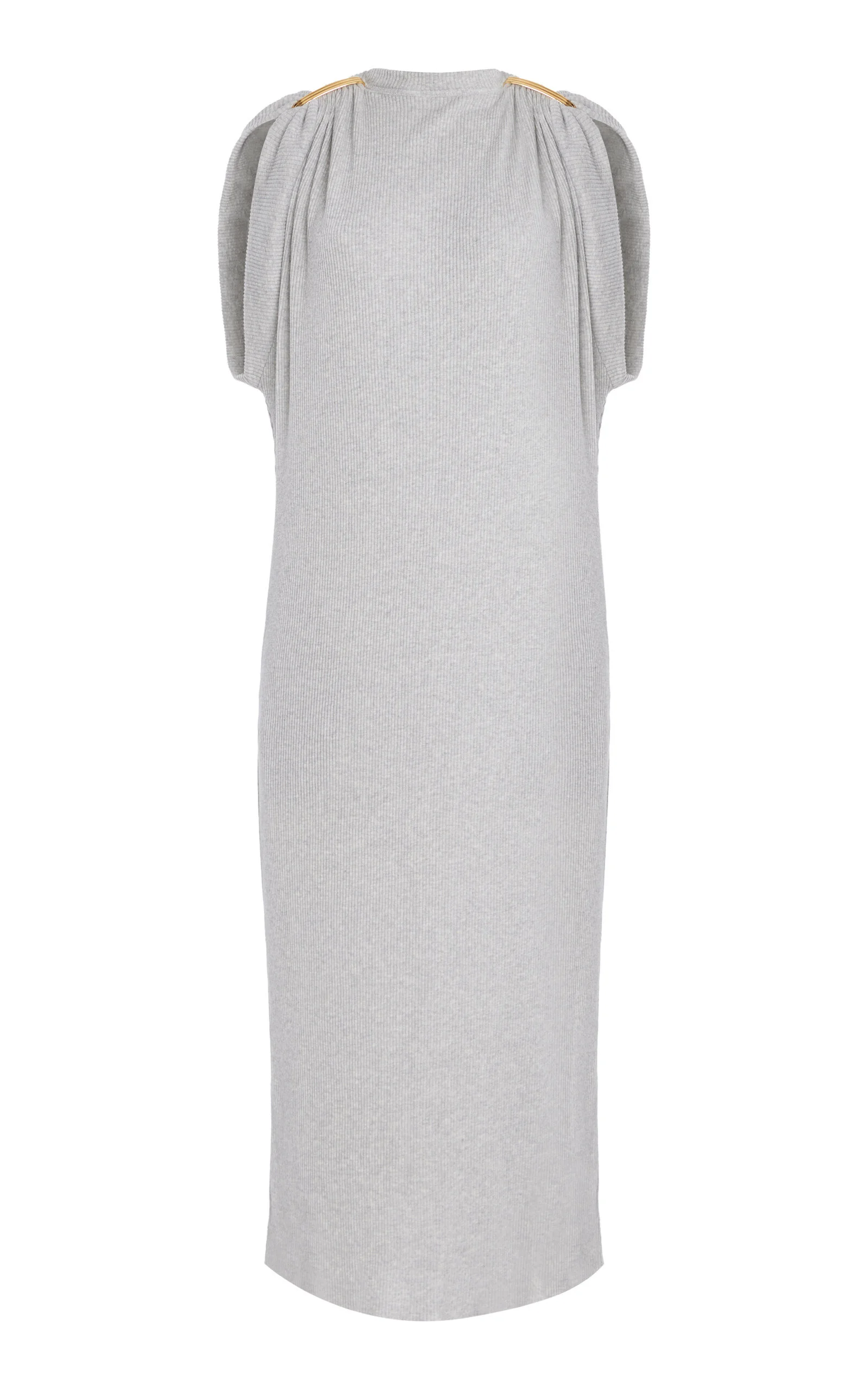 The Lucy Draped Ribbed Jersey Midi Dress grey