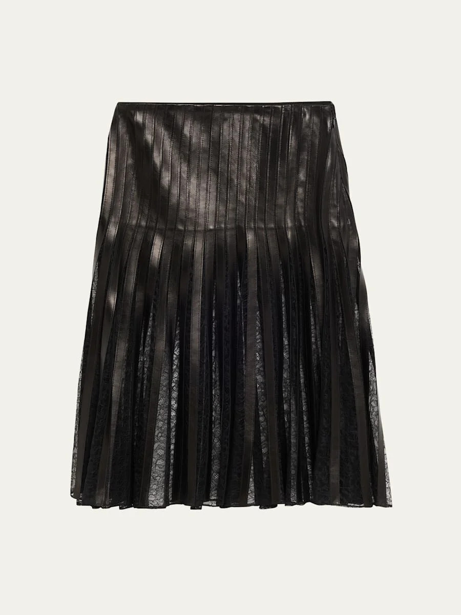 Alix Lace-Inset Pleated Leather Midi Skirt