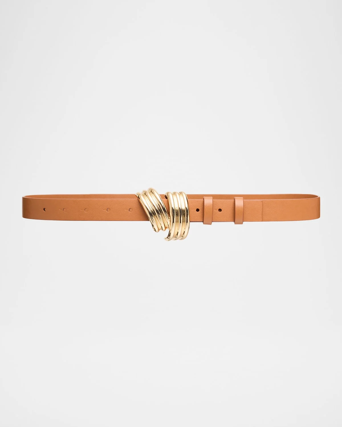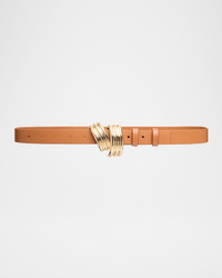 - Brandon Maxwell "Edythe" calfskin leather belt with a swirl buckle - Goldtone hardware - Adjustable fit - Medium width - Leather/brass - Made in USA