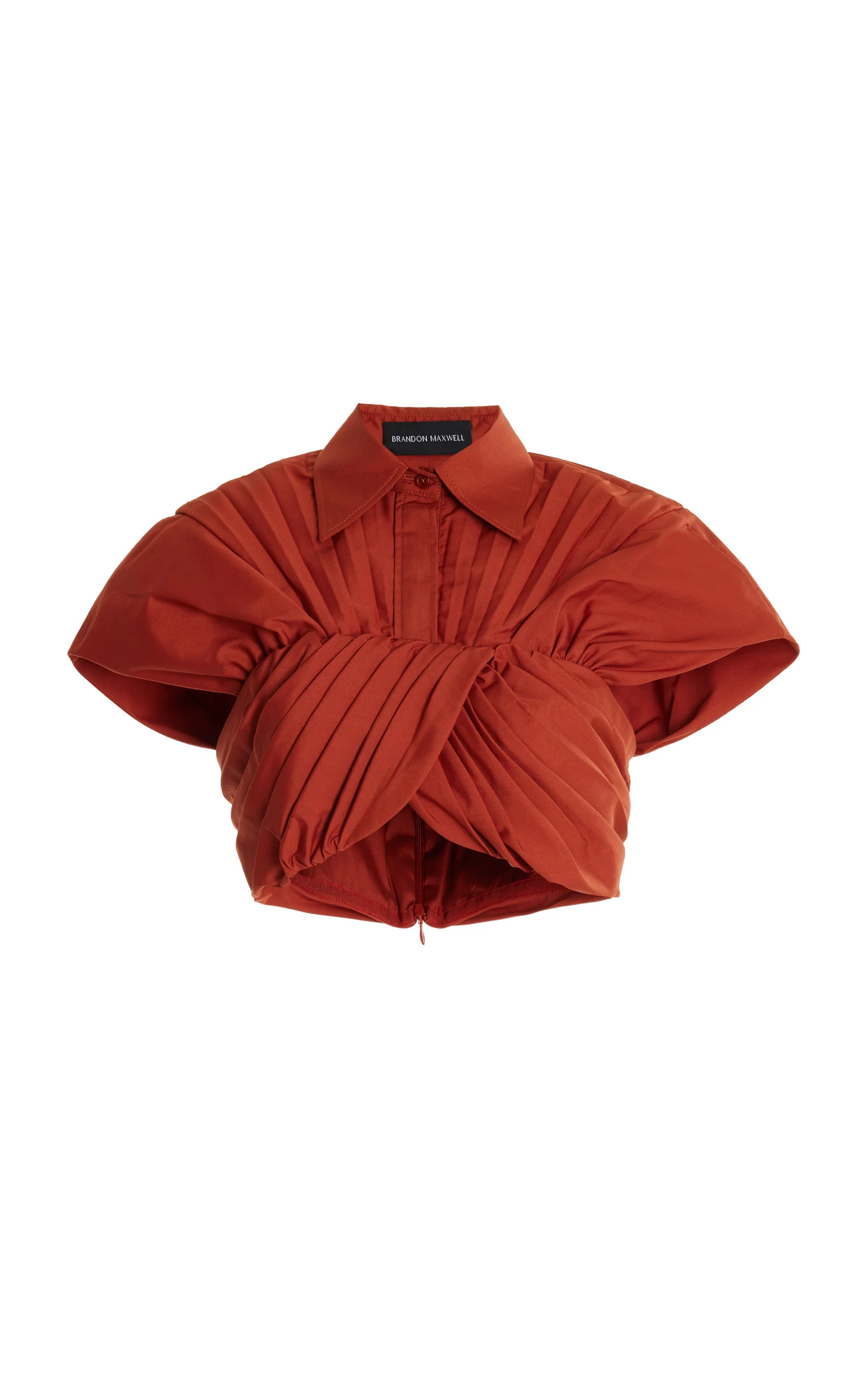 Maxwell returns to his roots for Pre-Fall '22, doubling down on thoughtful construction and silhouettes that flatter all—exactly what made him first fall in love with fashion and established him as a leading American designer. The results strike a poised glamour that's set to endure for seasons to come. Made from pure cotton, this slim cropped top has a draped effect and collared neckline. Pair yours with a maxi skirt for a cool cocktail look. PRODUCT DETAILS - Rust colorway is exclusive to Moda - Concealed zip fastening along back - Composition: 100% cotton - Dry clean only - Made in the USA SIZE & FIT - Our model is 180cm/ 5'11" and wearing a size 2 - Fits true to size, our fit specialist recommends taking your normal size