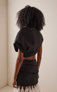 Exclusive RIviera Asymmetric Draped Satin Cotton Crop Top black