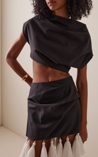 This season, the Texan did what he does best: American sportswear (read: everyday fashion) imbued with fantasy and glamour. Crafted from cotton, this asymmetric crop top is designed to be draped sumptuously off the shoulder. PRODUCT DETAILS - Pre-Fall '25 - Concealed zip fastening - Composition: 100% Cotton - Dry clean - Made in the USA SIZE & FIT - Designed for a slim fit