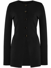 Holly cardigan Highlights - Black - Front button fastening - Crew neck - Front slit Made in Italy Composition Viscose 71%, Polyurethane 15%, Polyester 13%, Elastane 1% Washing instructions Dry Clean Only