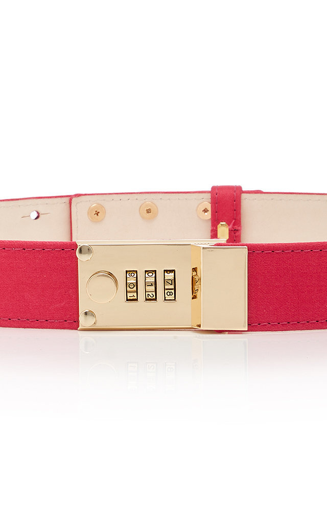 Brandon Maxwell's skinny belt is crafted with a lock embellishment and turnlock closure at back. Designed to be worn at the waist or hip. PRODUCT DETAILS - As seen on the Fall '19 runway - Lock embellishment, metal hardware - Turnlock closure - Composition: 73% cotton, 27% silk, 100% brass lock - Dry clean - Made in USA