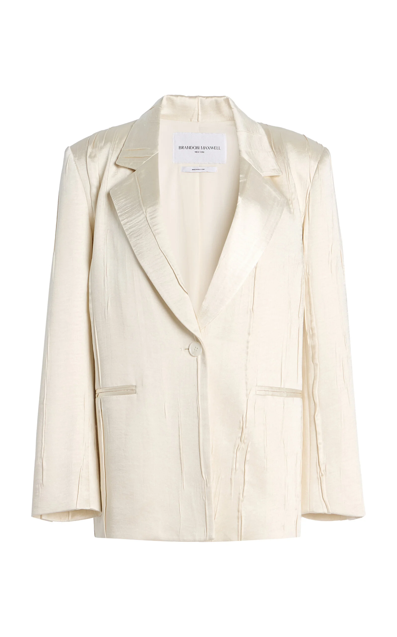 The Nell Single-Breasted Crushed-Satin Blazer ivory