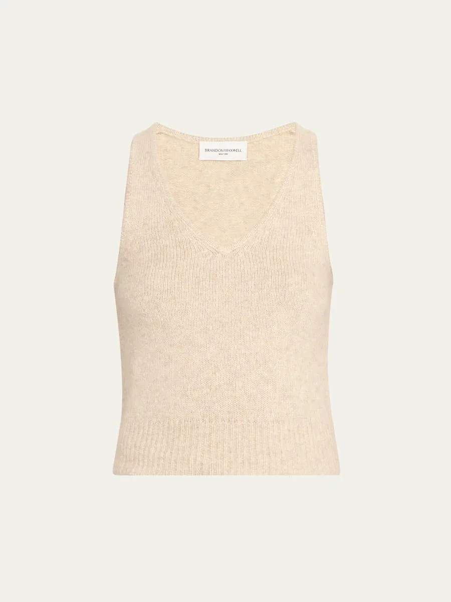 Brandon Maxwell "Reese" knit tank top V neckline Sleeveless Fitted Hip length Ribbed hem Pullover style Cashmere/silk Imported Online Inquiries: BGS21_BA348| Store Inquiries: #5022699