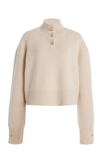 The Rowe Cropped Cashmere Henley Sweater taupe