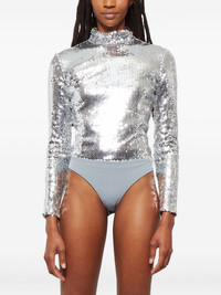 sequinned mock-neck bodysuit