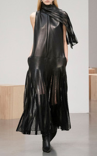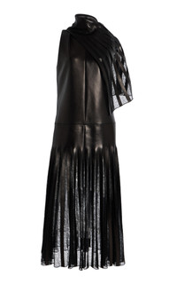 The Blythe Scarf-Detailed Leather Midi Dress black