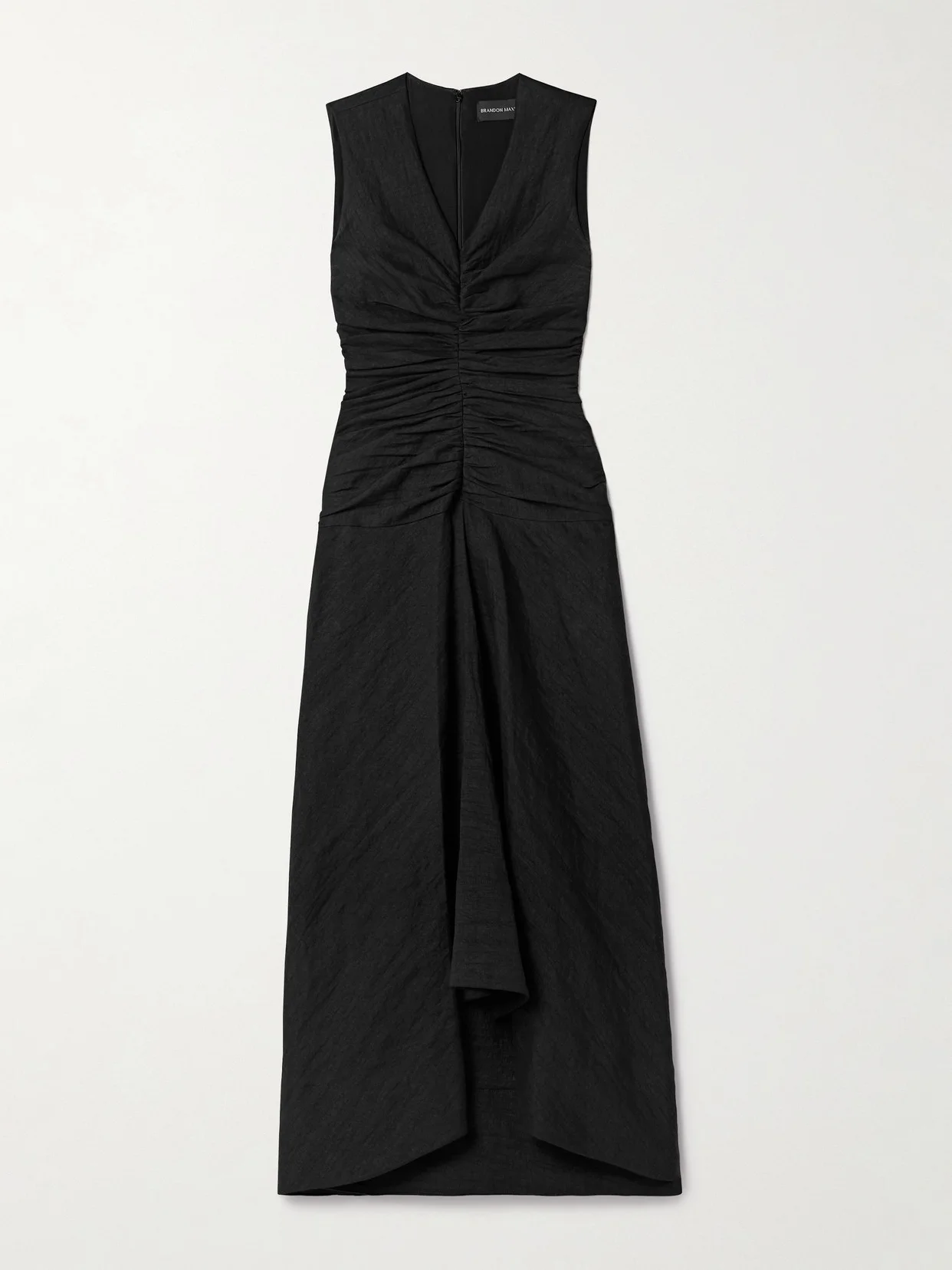 Brandon Maxwell's elegant 'The Finley' dress is ruched along the slim bodice before gently flaring out to a floaty skirt. It's made from a linen-blend and has a V-neckline and discreet side pockets. Style yours with pumps and statement jewelry.