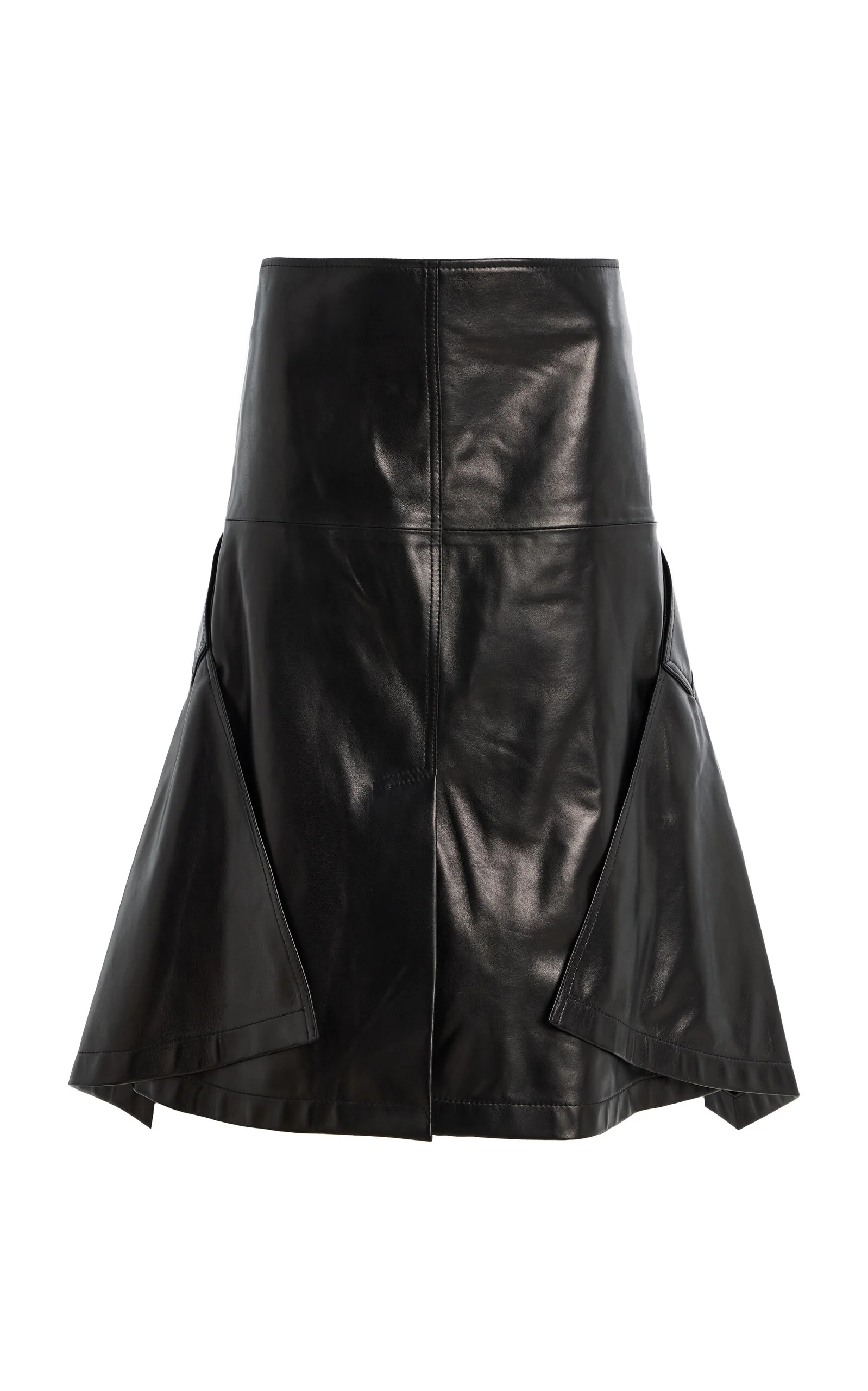 The Frankie Cascade-Hem Leather Knee-Length Skirt black