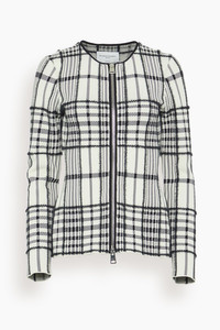 The Brandon Maxwell The Greer Zip Front Knit Cardigan is a must-have piece from their Fall 25 Collection. This cardigan is crafted in a classic black and white plaid with a slim silhouette and zip front. Wear yours with the matching skirt and boots. FIT DESCRIPTION MODEL MEASUREMENTS - Fits true to size, take your normal size - Cardigan - Slim silhouette - Two way zip front - Crew neckline - 72% Viscose, 28% Polyamide - Celeste is wearing a size XS - Bust: 35" - Waist: 25.5" - Hips: 34" - Height: 5’10”