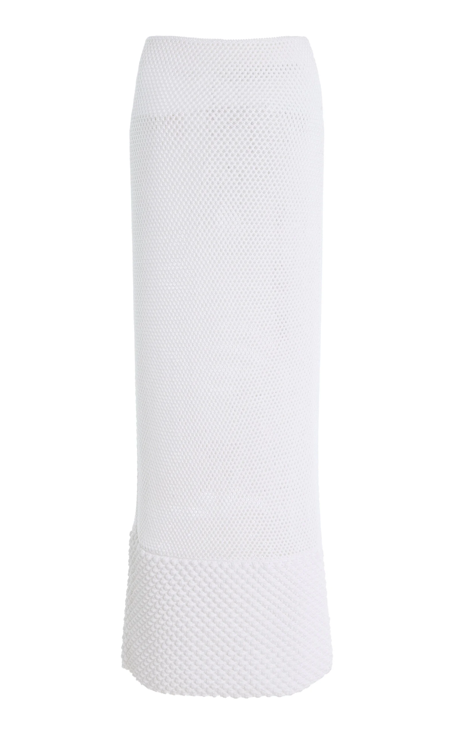 Brandon Maxwell continues to reinvent sophisticated staples this season, as always in a timeless yet contemporary manner. ‘The Iris’ is constructed from an open knit, adding a sheer element to an otherwise modest profile. It is designed to sit closely on the waist and hips, before gently flaring to a bobble-stitched, floor-length hem. Style with the label’s coordinating ‘Optic’ white bodysuit. PRODUCT DETAILS - Resort ‘26 - Slip on - Composition: 80% viscose, 11% polyester, 9% polyamide - Dry clean - Designer Color: Optic White - Made in Italy