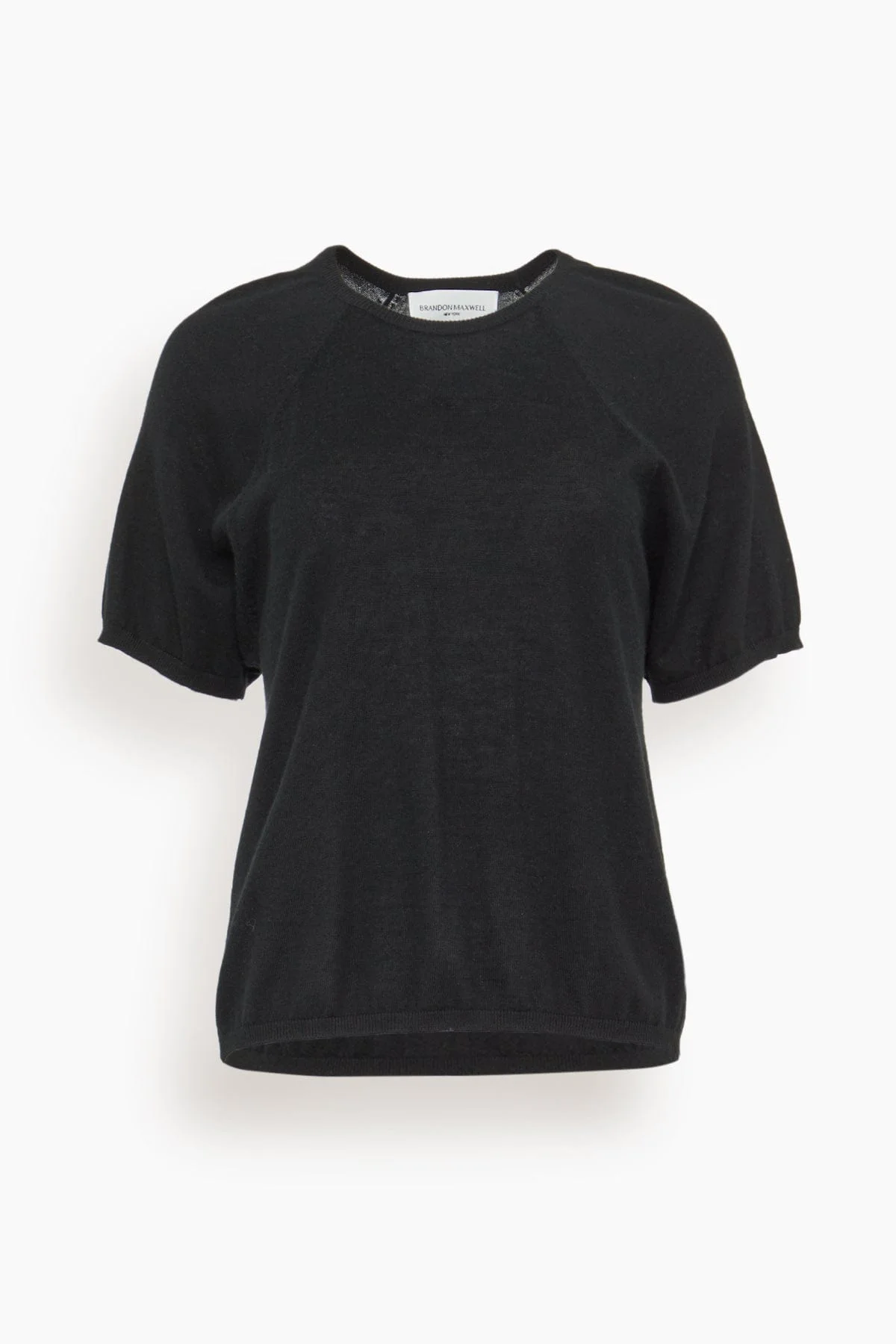 The Brandon Maxwell The Lee Classic Cashmere Tee in Black is a knit t-shirt crafted in fine cashmere for a lightweight, elevated take on an everyday essential. Designed with raglan sleeves and a relaxed silhouette, it combines casual ease with refined softness. Rib finishing at the neckline, sleeves, and hem adds subtle structure to the delicate jersey knit. FIT DESCRIPTION MODEL MEASUREMENTS - Fits true to size, take your normal size - 100% Cashmere - 16-gauge jersey stitch - Raglan sleeves - Ribbed neckline, sleeve ends, and hem - Lightweight knit construction - Relaxed silhouette, size down if you want a more tailored look - Hip length - Celeste is wearing a size XS - Bust: 35" - Waist: 25.5" - Hips: 34" - Height: 5’10”