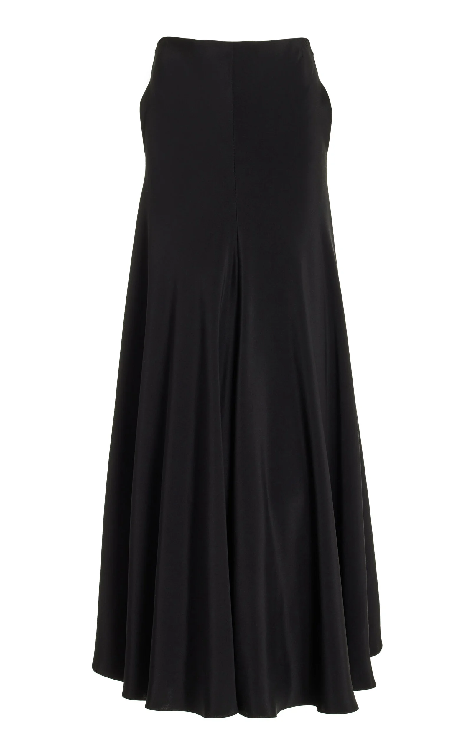 This season, the Texan did what he does best: American sportswear (read: everyday fashion) imbued with fantasy and glamour. Crafted from smooth silk crepe, the 'Millie' maxi skirt has a fluted silhouette with loose pleats that create elegant movement. PRODUCT DETAILS - Pre-Fall '24 - Concealed zip fastening along back - Composition: 100% Silk - Dry clean - Made in the USA SIZE & FIT - Our model is wearing a size US 2 - Model is 5'10.5" with a 31.5" bust, 23.5" waist, and 35.5" hip - Designed for a slim fit