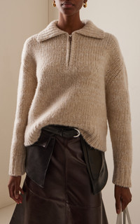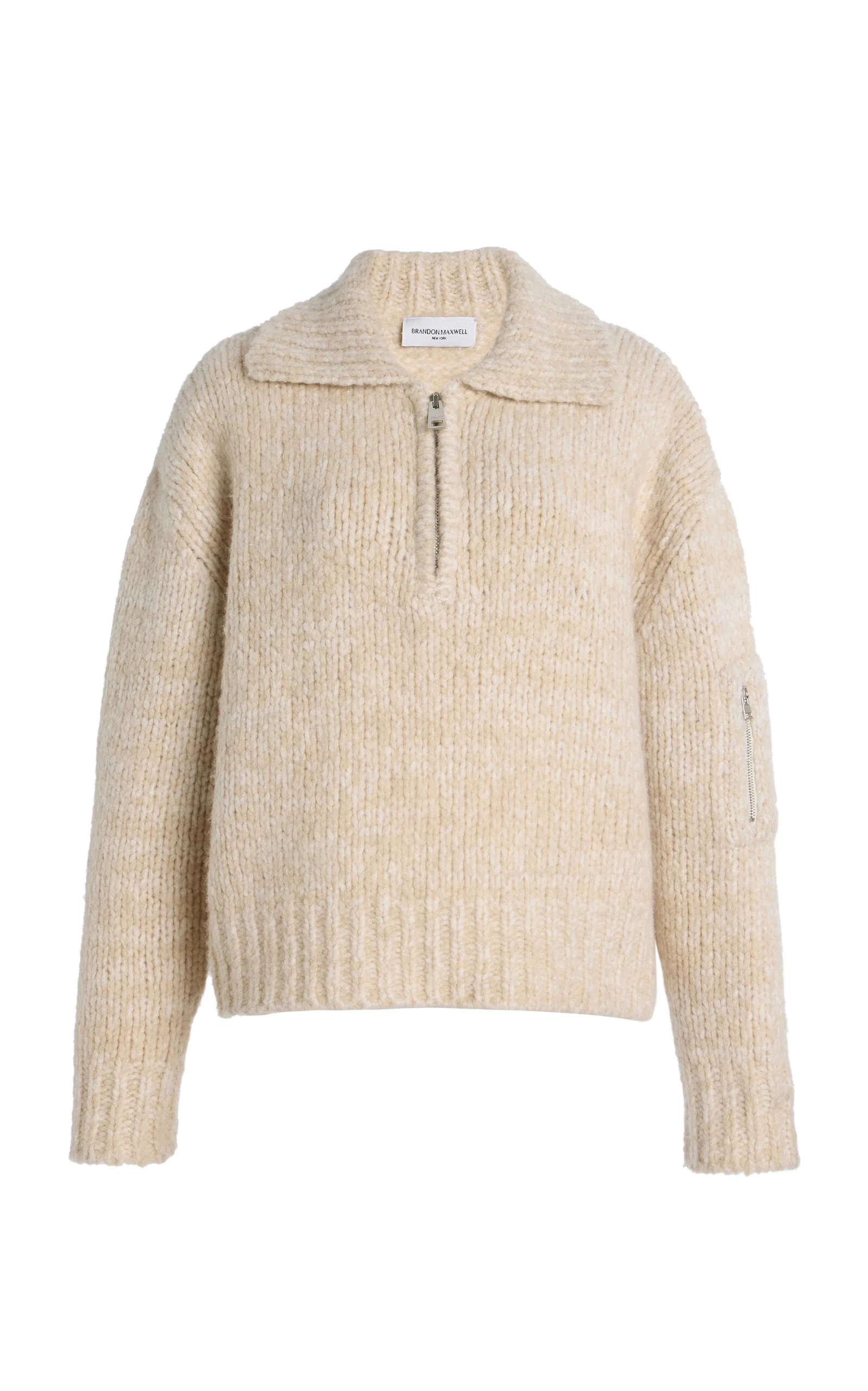 Brandon Maxwell continues to reinvent sophisticated staples this season, as always in a timeless yet contemporary manner. Woven from sumptuous cashmere-silk, this ‘Posie’ sweater is shaped with a box-fit, pointed collar and half-zip fastening. Place over cotton shirts for a classic look. PRODUCT DETAILS - Fall/Winter ‘25 - Half zip fastening - Composition: 90% cashmere, 10% silk - Dry clean - Designer Color: Static - Imported