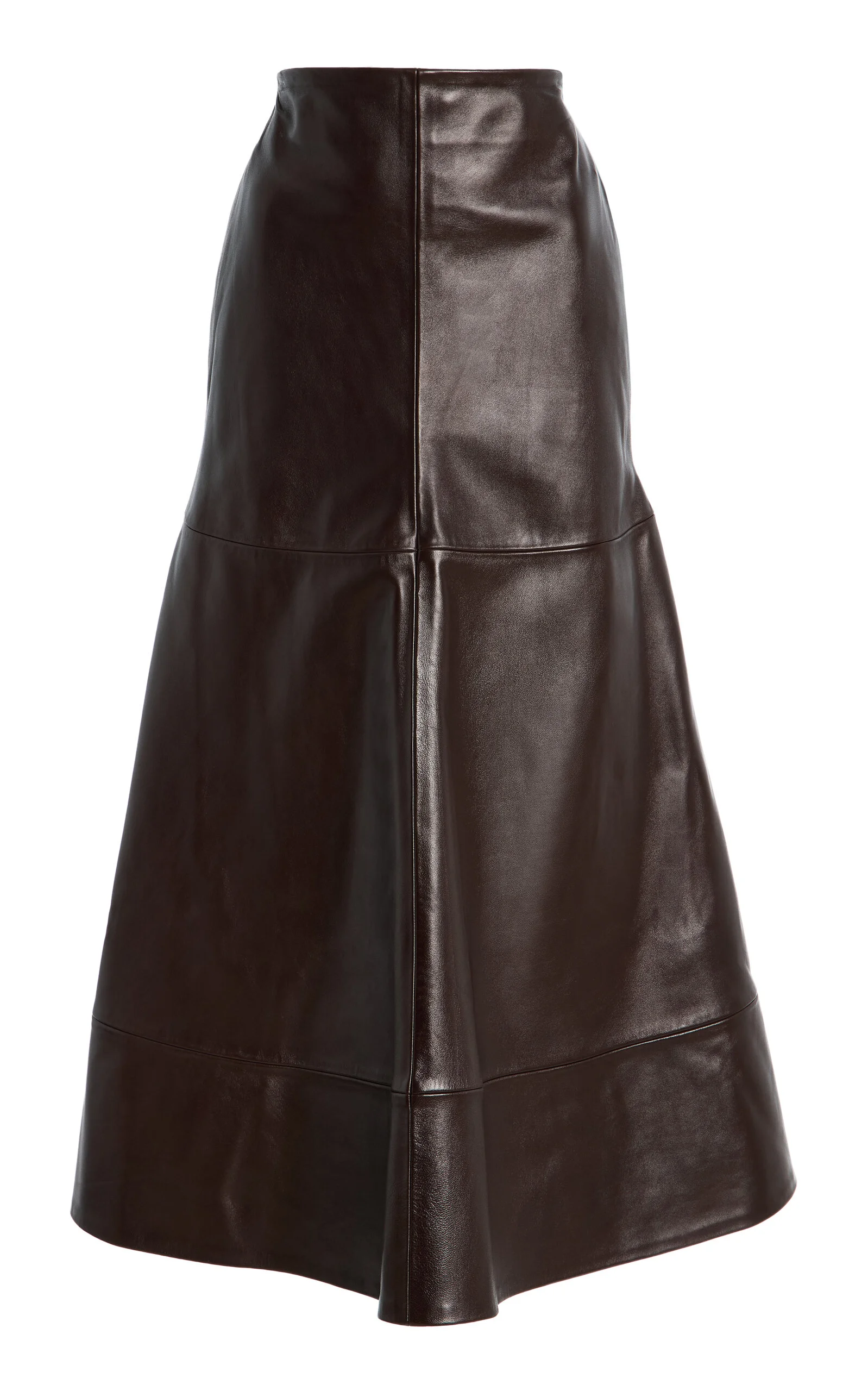 Brandon Maxwell continues to reinvent sophisticated staples this season, as always in a timeless yet contemporary manner. To elevate this leather classic, the label constructs the ‘Preston’ with a fitted dropped waist and voluminous flair. Complete the look with a coordinating jacket. PRODUCT DETAILS - Fall/Winter ‘25 - Concealed zip fastening - Composition: 100% lamb leather - Specialist clean - Made in the USA
