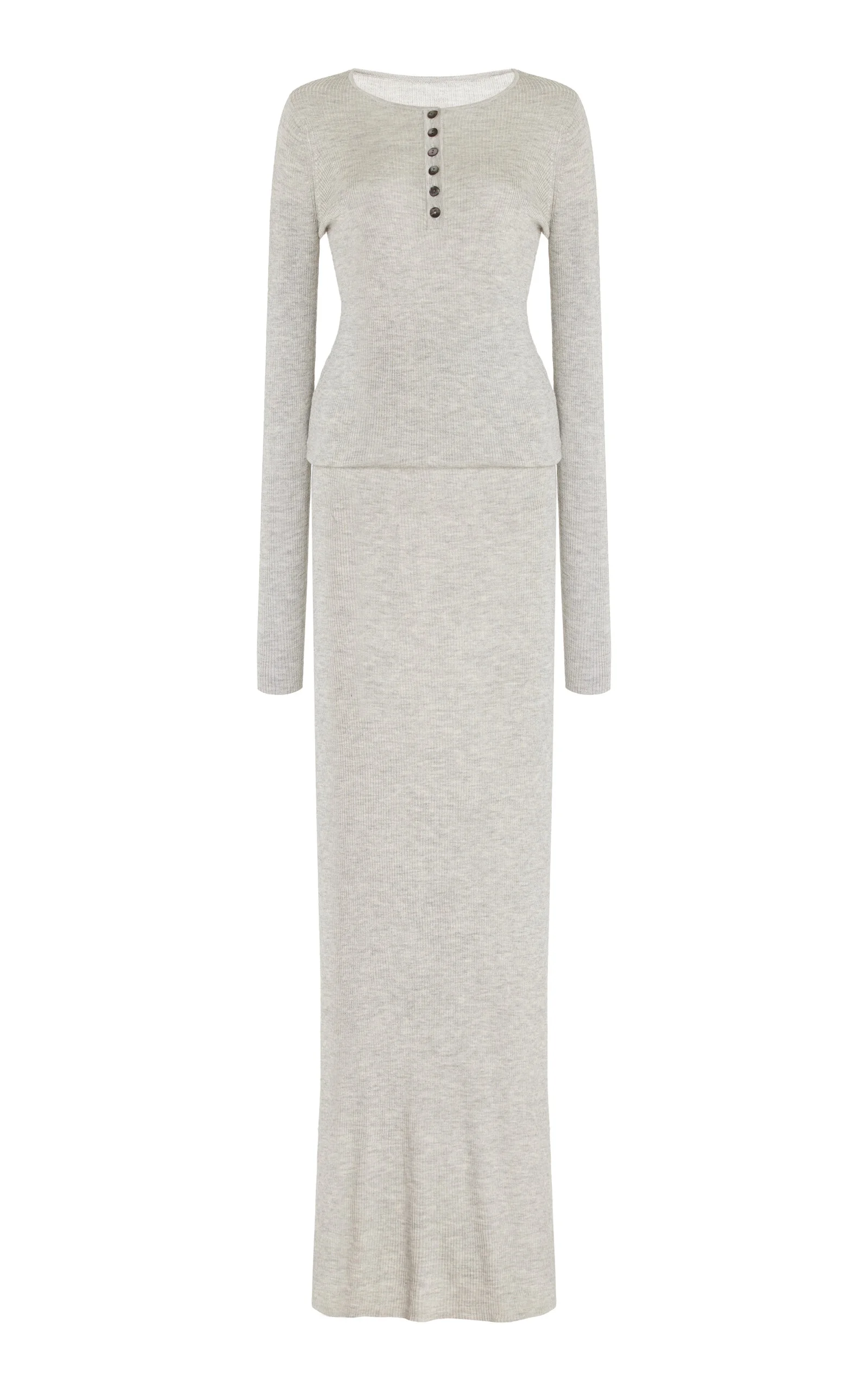 The Tilda Silk-Cashmere Jersey Henley Dress light grey