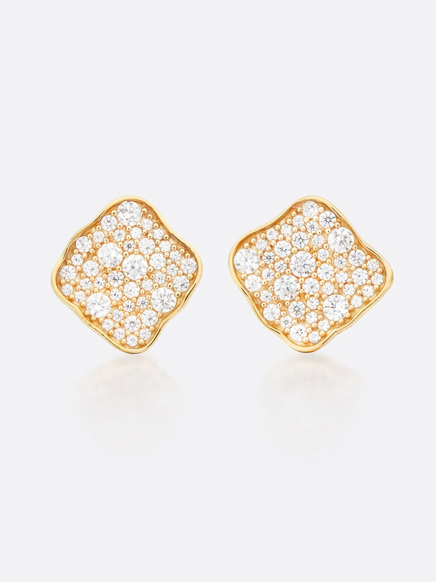 - Stud earrings - 18K Yellow Gold - Round Brilliant Pave handset, VS1-2 Clarity, H/I color Diamonds - 1.0 Carat total weight - Custom, asymmetrical square setting - Dimensions: 10mm x 1.7mm - Imported Everything about our Petite Fleur Pave Diamond Stud Earrings is special. From the 18K gold, asymmetrical, square shape to the Pave Diamond setting inspired by joy-filled days spent in the South of France, these hand-set, yellow gold with diamond earrings are the epitome of effortless femininity. Exclusive to BrochuWalker.com and our Brochu Walker Atlanta, Carmel-by-the-Sea, Southampton & Westport Stores. Shop The Petite Fleur Collection