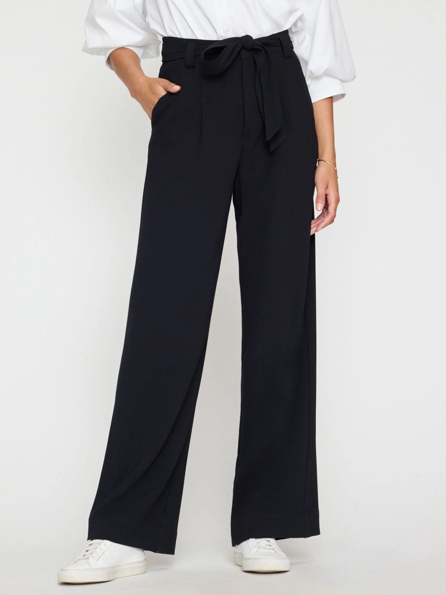 - Runs true to size - Wide leg silhouette - Mid-rise - Stitched down, pleated front - Concealed hook and zip fly closure - Belt loops with removable self-tie waist belt - Elasticized back waistband - Two side slant pockets - 32" inseam - Japanese Crepe - 100% Polyester - Imported - Model is 5'9" and is wearing a size Small Our forever classic Duke Pant is a chic, wide leg must have. In an elegantly draped Japanese Crepe it has the feminine details you love. A softly pleated front and self-tie sash belt make this pant a dress-up, dress-down wardrobe staple, while our signature elasticized back waistband adds comfort for everyday wear.