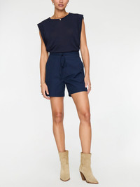 - Runs true to size - Front zipper front - Angled front pockets - Self-tie at waist - Back welt pocket, grosgrain detailing - 65% Polyester, 35% Cotton - Imported Meet the newest short in our best-selling fabrication: The Elio. Perfectly casual with our signature polish, it offers a self-tie waist with an elasticated back. Finished with an easy leg opening for an ultra-flattering fit.
