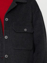 - Runs true to size - Oversized fit - Shirt jacket silhouette - Hits at the low hip - Structured collar - Button front - Dropped shoulders - Front patch pockets with button closure - Pockets at side seams - Button cuffs - Slight shirttail hem - Back yoke detail - 100% Double Faced Wool - Imported - Model is 5'9" and is wearing a size Small One of the most versatile pieces in the collection, our Ezra shirt jacket is the ultimate layering piece. Designed to be worn as buttoned or open as a casual-chic jacket, it has all the details you love. With functional front patch pockets, side seam pockets and button cuffs, it is perfect for travel or going about your understated daily life. The essence of ‘luxe leisure’, Ezra is the piece you will want to wear all winter long.