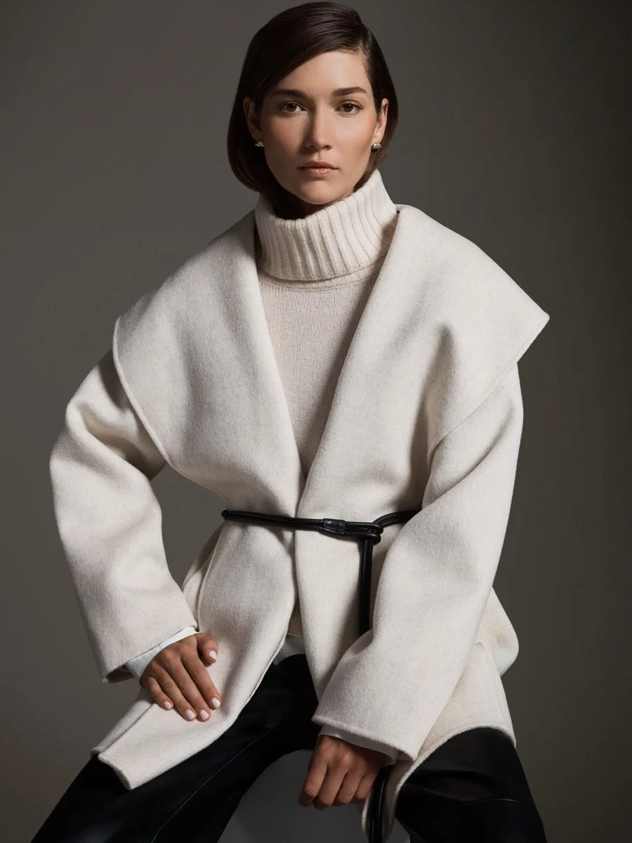 - Runs true to size - Relaxed fit - Hits at low hip - Shawl collar neckline - Open front, no closure - On seam pockets - Forward side seam detail - Back darts to create a slight cocoon shape - 33 ½”, size Small - 100% Wool - Imported - Model is 5'9" and is wearing a size Small Live in luxury in our Finley Coat! In a rich neutral, this relaxed fit coat features forward side seam details and back darts to create a slight cocoon shape. With a sensual shawl collar, functional on seam pockets and open front for ease, this effortless outerwear piece deserves to be layered over everything.