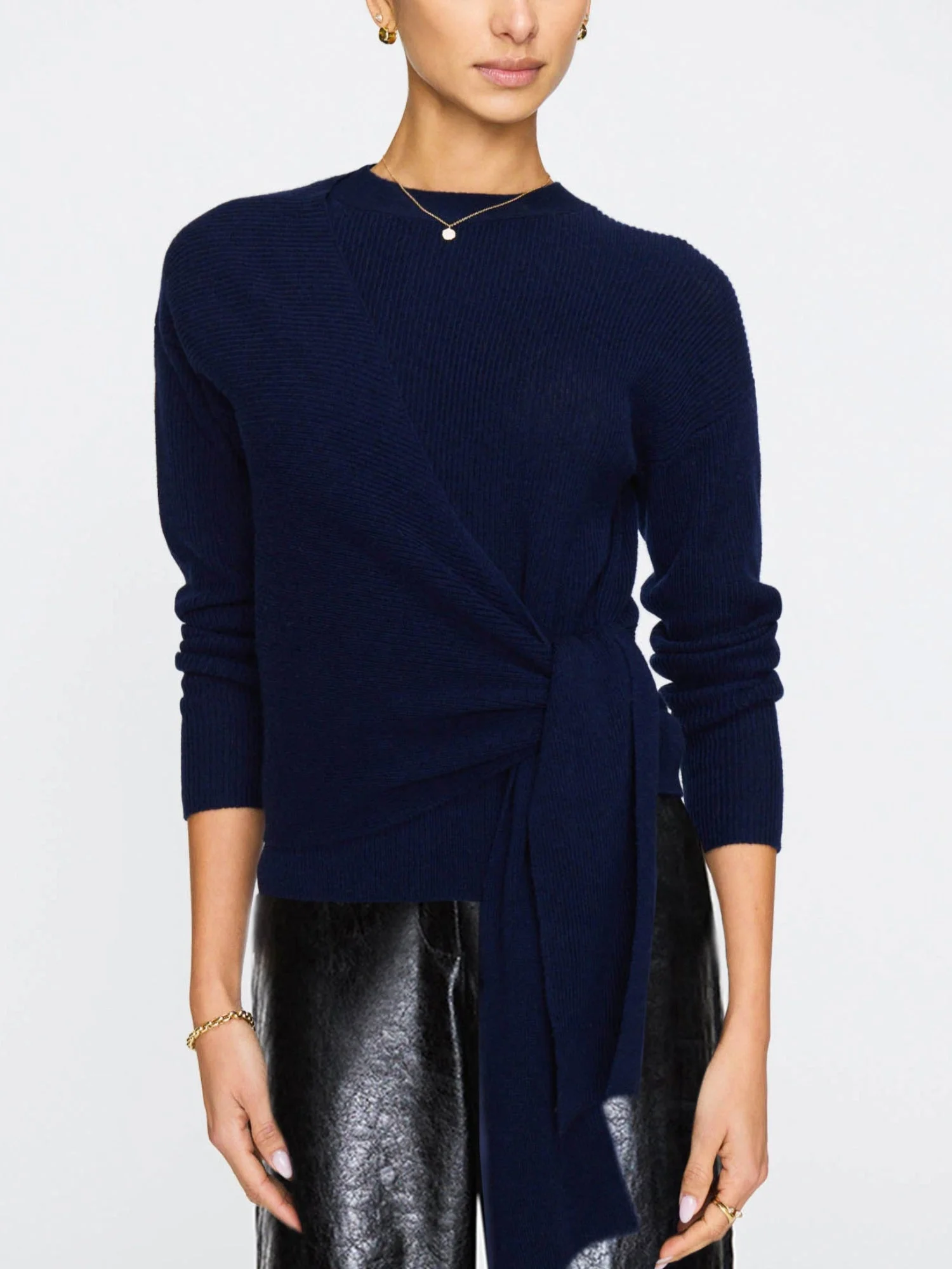 - Runs true to size - Slim fit - Hits at high hip on body - Long sleeves - Crewneck with banded trim - Adjustable waist tie - Slight high-low hem with angled side splits - 70% Wool, 30% Cashmere - Imported A modernized classic, the Greys Wrap Sweater offers a chic, allover ribbed design with a self-wrap tie for a flattering silhouette. Ideal for adding texture to your wardrobe.