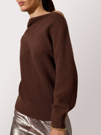 - Runs true to size - Relaxed fit - Long sleeves - Ribbed cuffs and hem - Angled neckline - Directional rib stitch - 83% Viscose, 17% Nylon - 45% Merino Wool, 10% Cashmere, 25% Viscose, 20% Polyamide Italian Yarn - Imported - Model is 5'9" and is wearing a size Small The Hart Off-Shoulder Sweater updates a classic style with an engineered rib stitch that allows it to fall effortlessly on one shoulder. Perfectly blending comfort, weight, and elegance, this Italian wool cashmere piece is a seasonal must-have.