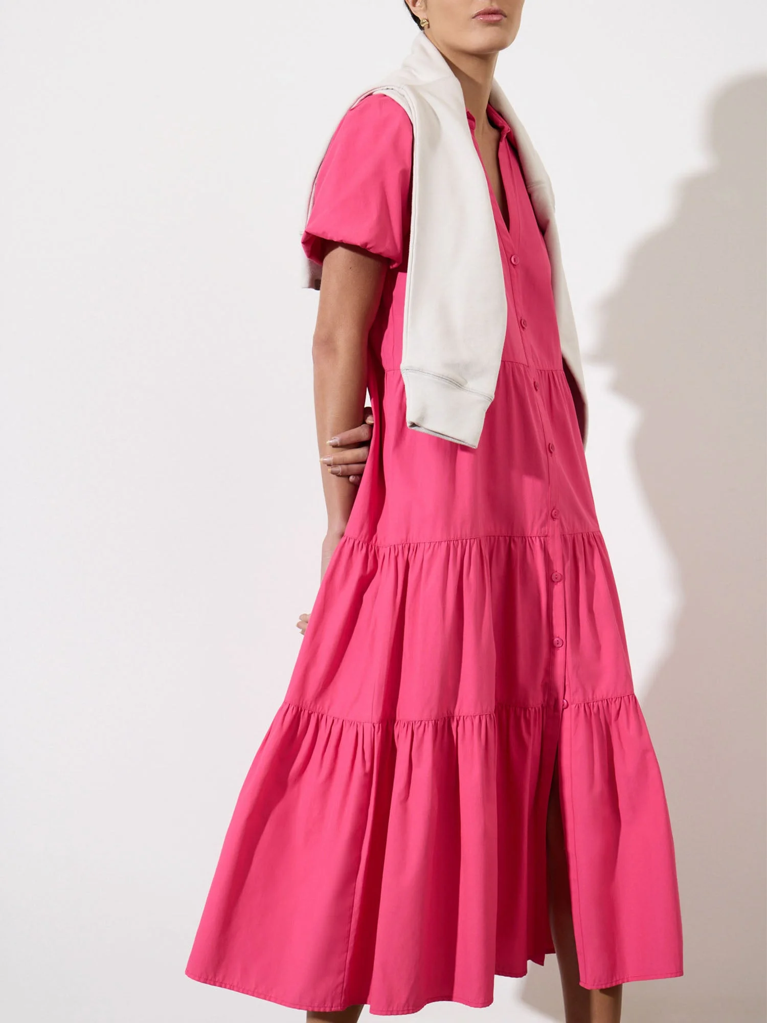 - Runs true to size - Washed cotton finish - Relaxed fit - Length- XS: 48", S: 49 ", M: 50", L: 51" - Chest Measurements- XS: 34 ½” – 35 ½”, S: 36 ½” – 37 ½”, M: 38 ½” – 39 ½”, L: 41 ½ - 42 ½” - Tiered skirt - V-neckline - Puff sleeves - Button front placket - 65% Polyester/35% Cotton - Imported - Model is 5'9" and is wearing a size Small "Easy, Breezy Perfection" — InStyle.com "Brochu Walker’s tiered shirt dress construction is endlessly flattering…” — Forbes The Havana, the dress we are known for, is the iconic Brochu Walker essential. In a sophisticated, signature silhouette, this bright pink dress is assured to take you from season to season. A tiered skirt and puff sleeves give a definitive feminine appeal, while the collared v-neck and button front placket, make it as chic as it is versatile. Designed to be worn belted or loose and flowing, it is the one piece that can take you everywhere. Shop The Havana Collection