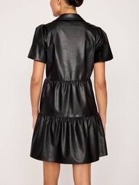- Runs true to size - Relaxed fit - Mini length, 36" on size Small - Chest Measurements: XS: 36” / S: 37 ½” / M: 39 ½” / L: 42 ½” - Tiered skirt - V-neckline - Button front placket - Puff sleeves - On seam pockets - Stretch Vegan Leather - 87% Polyurethane/13% Spandex - Imported - Model is 5'9" and is wearing a size Small Our most loved Havana Mini Dress is now available in our sought-after vegan leather. Like its big sister, a tiered skirt and puff sleeves give a definitive feminine appeal, while the collared V-neck and button front placket, make it as chic as it is versatile. We added on seam pockets for added functionality making it perfect for every day, everywhere. Shop The Havana Collection