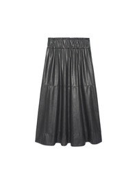 - Runs true to size - Paperbag finish edge - Elasticated waistband - On-seam pockets - Midi length - Pull-on style - 87% Polyester, 13% Polyurethane - Imported - Model is 5'9" and is wearing a size Small Inspired by the summer Edda skirt, the Issa Skirt features a mid-thigh seam and saddle stitching for an instantly classic vegan leather construction. Its paperbag waist and pull-on style create effortless elegance.