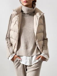 - Runs true to size - Fold over turtleneck - Self-fringe trim along the sleeves - Raglan long sleeves - Ribbed trim neck, cuffs and hem - Curved hem, hammered satin partial underlayer - 70% Wool/30% Cashmere - Dry clean recommended - Imported - Model is 5'9" and is wearing a size Small We combined two of our best-selling styles into one special sweater that is sure to become an instant signature piece. Our most-loved Jolie Turtleneck is now in an effortless Looker silhouette. Self-fringe trim details add dimension to the long raglan sleeves, a fold over turtleneck which can also be worn scrunched down and curved hem, hammered satin partial underlayer, visible at the hem and cuffs, keep you looking cozy chic. With split sides for added ease and wide ribbing on the cuffs and hem, this relaxed, slightly oversized sweater will be the one Looker you turn to as the seasons change.