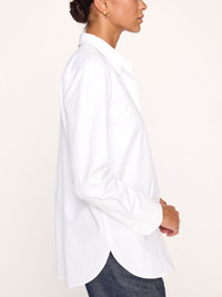 - Runs true to size - Tailored fit - Pointed shirt collar - Overlap French seam detailing at side seams with wide gussets - Long sleeves - Button cuffs with grosgrain ribbon detailing - Shirttail hem - Pleated back yoke - 28 ½” - 65% Poly/35% Cotton - Imported The newest addition to our best-selling shirt collection, our Lark Shirt is a sophisticated classic with a Brochu Walker twist. In a leaner, longer fit, perfect for streamlined look, it features special details like overlap French seaming down the sides, side gussets and subtle grosgrain trim on the cuffs. A pointed shirt collar and button placket are softened by a curved shirttail hem and a pleated back yoke, making Lark the epitome of tailored femininity.