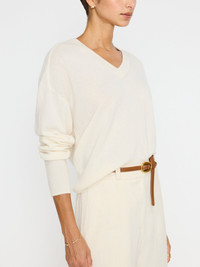 - Runs true to size - Relaxed fit - V neck rib trim - Saddle shoulders - Long sleeves - Straight hem - Fitted ribbed cuffs and hem - Signature center back seam detail - 22 ¼” - 100% Cashmere - Imported One of the easiest sweaters in the collection, our Leia Vee Sweater features ribbed, v neckline, saddle shoulders and signature details like our center back seam making it an everyday classic. A relaxed fit with tighter ribbed cuffs and hem gives it that cozy wear-now sensibility, while a custom-hue gives it that touch of uniqueness you love. Part of our ‘Kinder to The Environment’ collection, Leia is made from RWS-certified, traceable cashmere yarn which means it adheres to stringent animal welfare standards.