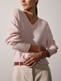 - Runs true to size - Relaxed fit - V neck rib trim - Saddle shoulders - Long sleeves - Straight hem - Fitted ribbed cuffs and hem - Signature center back seam detail - 22 ¼” - 100% Cashmere - Imported One of the easiest sweaters in the collection, our Leia Vee Sweater features ribbed, v neckline, saddle shoulders and signature details like our center back seam making it an everyday classic. A relaxed fit with tighter ribbed cuffs and hem gives it that cozy wear-now sensibility, while a custom-hue gives it that touch of uniqueness you love. Part of our ‘Kinder to The Environment’ collection, Leia is made from RWS-certified, traceable cashmere yarn which means it adheres to stringent animal welfare standards.