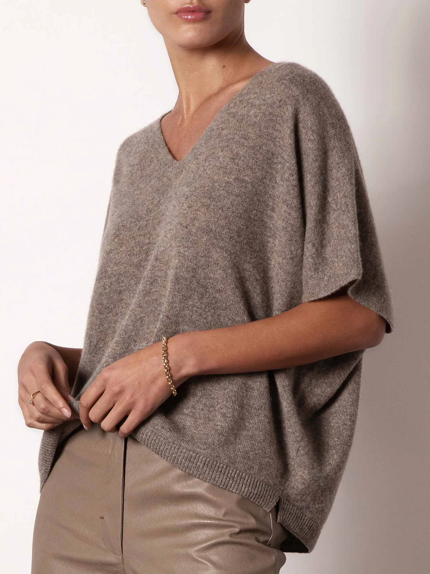 - Runs true to size - T-shirt silhouette - Relaxed fit - Vee neckline with notch split detail - Light ribbing on the neckline, sleeves and hem - Straight hem - Signature center back seam detail - 100% Cashmere - Imported We love our Ophi Vee…the perfect 100% cashmere t-shirt to be layered now and worn on its own later. In a relaxed fit with short sleeves, it feels modern, while the subtly of the design feels sensual and feminine. No bells and whistles needed…our Ophi cashmere sweater is simplicity at its finest. Part of our ‘Kinder To The Environment’ collection, it incorporates RWS-certified, traceable yarn which means it adheres to stringent animal welfare standards. Shop Short Sleeve Blouses