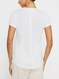 - Runs true to size - Relaxed fit - Scoop, crewneck - Cap sleeves with double turnback armholes - Elasticized, ruched shoulders - Subtle shirttail hem - Signature center back seam - Length 25” - 55% Linen/45% Viscose - Imported - Model is 5'9" and is wearing a size Small An update to our most-loved Reins Tee our Remy Tee combines our sensual sensibility with an easy to layer cap sleeve. In a relaxed silhouette that features elasticized, ruched shoulders this feminine t-shirt is anything but basic. Further defined by a scoop neck, subtle curved hem and our signature center back seam, this is the tee you will want to wear when you want to be casual yet make a statement.