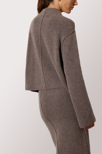- Runs true to size - Easy, boxy fit - Hits at mid hip on body - Long sleeves - Clean funnel neckline - Signature outside link seam at center back - Forward side seams with outside linking - 77% Merino Wool, 22% Polyamide, 1% Elastane Italian Yarn - Imported - Model is 5'9" and is wearing a size Small The Ronan Sweater offers cozy sophistication in a brushed Italian stretch wool blend. Its clean funnel neckline and boxy fit make it a versatile layering piece for everyday luxury.