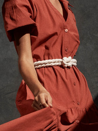 - 63” long – one size - Designed to be wrapped - Raw, frayed-edge fringe on each end - BW emblem plate detail - 100% Natural Cotton - Shipped with a BW bag for easy storing - Imported Our effortless little dresses are designed to be worn with or without a belt and our Rope Belt is the perfect option for when you desire a cinched waist look. In a natural cotton yarn with raw, frayed-edge fringe at each end, this boho- chic belt is designed to be wrapped. Our signature BW emblem plate detail adds the finishing touch to our newest, must-have accessory. Due to the natural characteristics of this material, we recommend combing the fringe ends from time to time. Exclusive to BrochuWalker.com and our Brochu Walker Atlanta, Carmel-by-the-Sea, Southampton & Westport Stores.