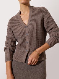 - Runs true to size - Hits at high hip - Long sleeves - Engineered neckline - Button front - Ribbed cuffs and hem - 77% Cotton, 23% Polyester - Imported - Model is 5'9" and is wearing a size Small Timeless and sophisticated, the Vito Cardigan is crafted with an engineered neckline and ribbed trims. Its fitted silhouette and clean placket ensure it’s a layering essential all season long.