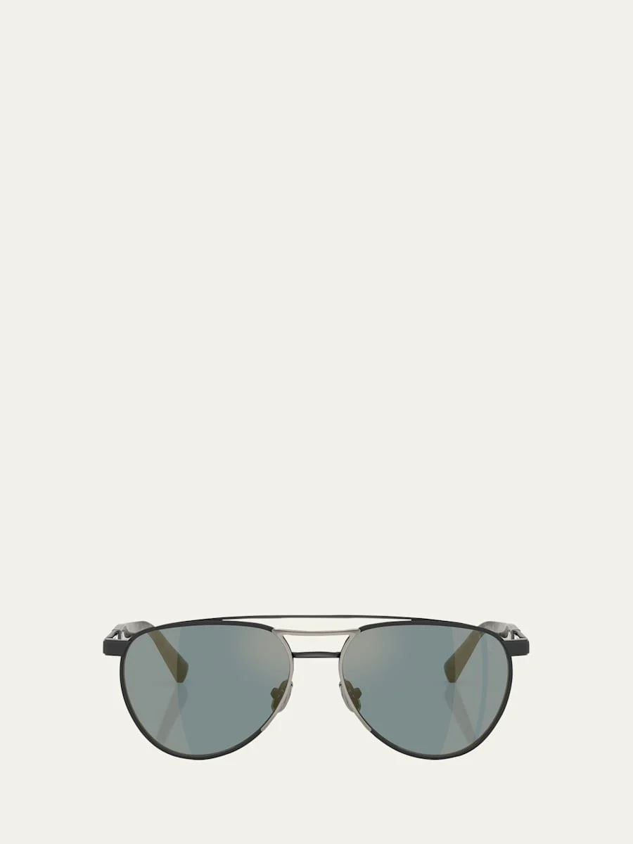 Brunello Cucinelli "0BC2007ST" aviator sunglasses in titanium Eye/bridge/temple (in mm): 56-16-145mm Solid lenses Adjustable nose pads Double brow bar Thin, tapered arms Logo at lens Style is rx-able Titanium Spot clean 100% UVA/UVB protection Made in Italy Proposition 65 warning for California residents Online Inquiries: BGS21_D553H| Store Inquiries: #4973429