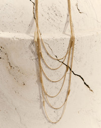 The sparkle of the fine monili rows marry perfectly with the natural colors and textures of the Brunello Cucinelli collection. A symphony of golden monili rays of the 18K yellow Gold necklace completes the look, expanding like concentric waves on the surface of water. Set in the clasp, a round 0.015ct Diamond completes the jewelry with an “invisible” detail of sophistication. MATERIALS The 18K yellow Gold jewelry was created and handcrafted in Umbria, the Italian region that is home to the village of Solomeo. The 0.015ct Diamond which embellishes the clasp is a round cut. Fine rows of 18K yellow Gold monili represent the iconic element of the Brunello Cucinelli collections: each row is made up of small rounded beads with a faceted effect. DETAILS The jewel is entirely made from 18 kt yellow gold Adjustable length closure clasp A 0.015 ct round brilliant cut diamond embellishes the closure clasp The maximum length of the necklace is approximately 45 cm (17.72") Designed and Made in Italy Jewels come with a special packaging dedicated to the Aurum line 18K YELLOW GOLD, 0.015 ct DIAMOND