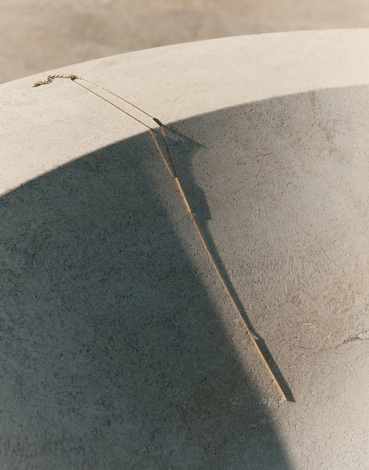The delicate and pure shapes of the 18K yellow Gold necklace perfectly embody the spirit of the Aurum line: refined jewelry that enhances the Gold’s natural splendor thanks to a simple and essential design. Two small elongated pendants are finished with mirror polishing, a technique that engraves the surface with a special bit to accentuate the Gold’s shiny reflections. Set in the clasp, a round 0.015ct Diamond completes the jewelry with an “invisible” detail of sophistication. MATERIALS The 18K yellow Gold jewelry was designed and handcrafted in Umbria, the Italian region that is home to the hamlet of Solomeo. The 0.015ct Diamond which embellishes the clasp is a round cut. A fine row of 18K yellow Gold monili represents the iconic element of the Brunello Cucinelli collections and is made up of small rounded beads with a faceted effect. DETAILS The jewel is entirely made from 18 kt yellow gold Adjustable length closure clasp A 0.015 ct round brilliant cut diamond embellishes the closure clasp The maximum length of the necklace is approximately 44 cm (17.32") Designed and Made in Italy Jewels come with a special packaging dedicated to the Aurum line 18K YELLOW GOLD, 0.015 ct DIAMOND