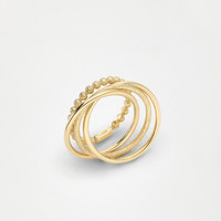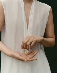 The essential lines of the 18K yellow Gold Aurum collection enhance the preciousness of materials and craftsmanship, distinctive elements of Brunello Cucinelli style. This jewelry is made up of three thin rings that are joined together, and a fourth ring that brings to mind the texture of a row of monili, the iconic element of the Women’s collections. MATERIALS The 18K yellow Gold jewelry was designed and handcrafted in Umbria, the Italian region that is home to the hamlet of Solomeo. DETAILS The jewel is entirely made from 18 kt yellow gold Designed and Made in Italy Size XS corresponds to Italian size no. 10, i.e. American size no. 5.25 Size S corresponds to Italian size no. 13, i.e. American size no. 6,25 Size M corresponds to Italian size no. 15, i.e. American size no. 7 Size L corresponds to Italian size no. 18, i.e. American size no. 8.25 If you have any doubt or require further information about ring sizes, please do not hesitate to contact our customer service or a Brunello Cucinelli boutique Jewels come with a special packaging dedicated to the Aurum line 18K YELLOW GOLD