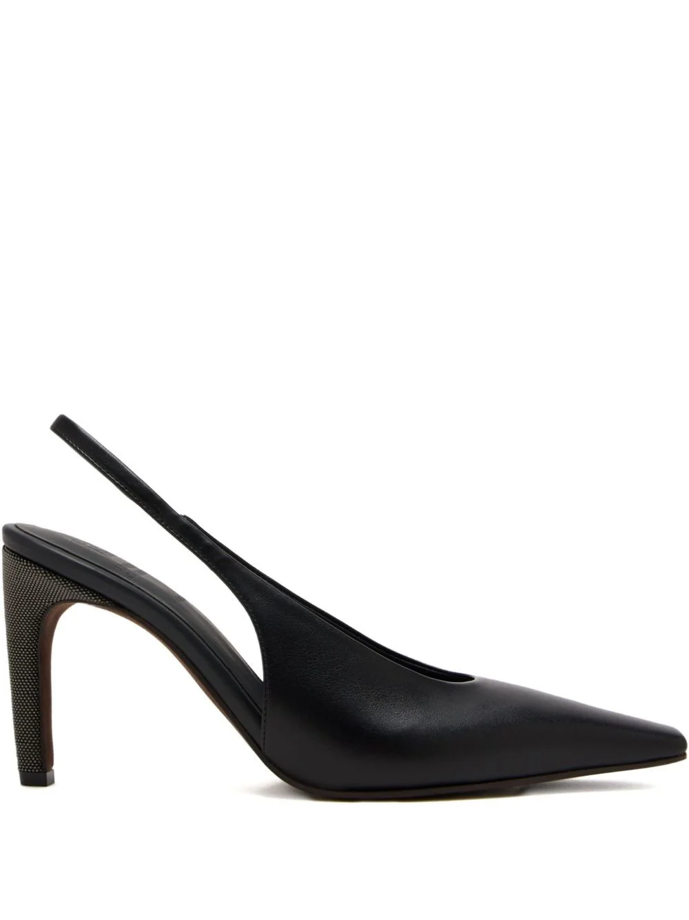 80mm slingback embellished heel pumps Highlights - Black - Leather upper - Slingback strap - Embellished heel - High heel Made in Italy Composition Outer: Leather 100% Lining: Leather 100% Sole: Calf Leather 100% SIZE & FIT Measurement HEEL 3.14 in(8 cm)