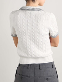EDITORS'NOTES The humble polo shirt is a cornerstone of preppy style and Brunello Cucinelli's version is an adaptable staple you'll reach for throughout the seasons. It's cable-knitted from cotton and has sporty gray stripes and the logo appliqued at the chest. Wear yours with tailoring or shorts. DETAILS & CARE - White and gray cotton - Button fastenings along front - 100% cotton; buttons: 100% horn (Buffalo) - Hand wash or dry clean