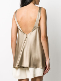 asymmetric metallic top Beige silk blend asymmetric metallic top from Brunello Cucinelli featuring a round neck, a sleeveless design, a metallic sheen, an open back and an asymmetric hem. Made in Italy Composition Eco Brass 100%, Silk 96%, Spandex/Elastane 4% SIZE & FIT Model measurements Height 5 ft 10 in(1.78 m) Bust/Chest 33.07 in(84 cm) Hips 35.82 in(91 cm) Waist 25.98 in(66 cm) FittingInformation This piece fits true to size. We recommend you get your regular size Cut for a loose fit Made with a mid-weight stretch fabric Washing instructions Hand Wash