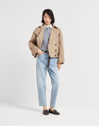 Relaxed volumes and straight lines define the informal attitude of the Baggy Tapered trousers. The soft, substantial feel of pure cotton Authentic denim enhances the casual silhouette of the trousers, which features a leg that tapers slightly at the bottom. MATERIALS The new Authentic cotton fabric maintains the characteristically full, even texture of denim, but is also pleasantly soft and comfortable to wear. The lived-in look and special nuanced effect of the color have been created thanks to various dyes and washes. As a result, its hue may evolve and naturally lighten with washing and daily use, refined traits of the fabric itself. DETAILS Zip closure with button Front pockets with watch pocket Back patch pockets 100% COTTON